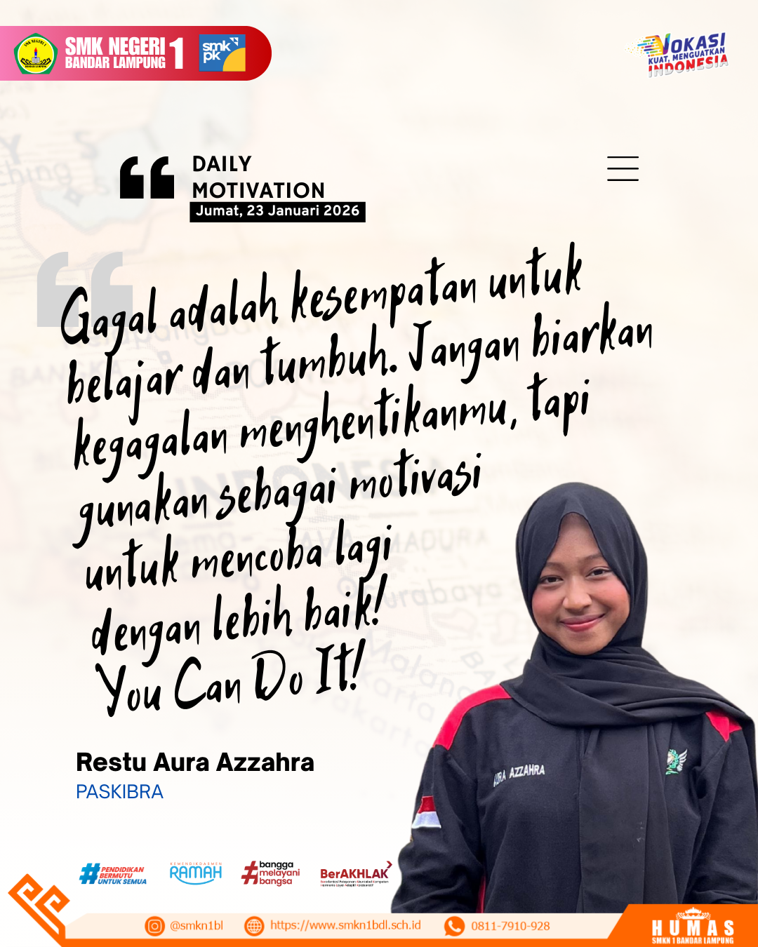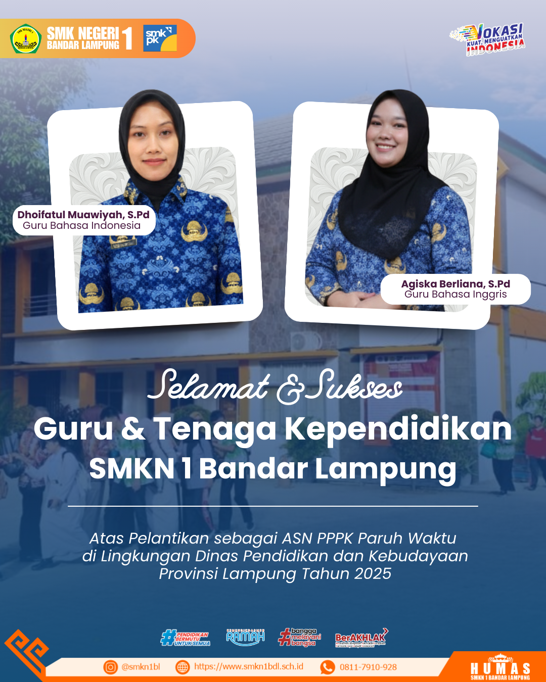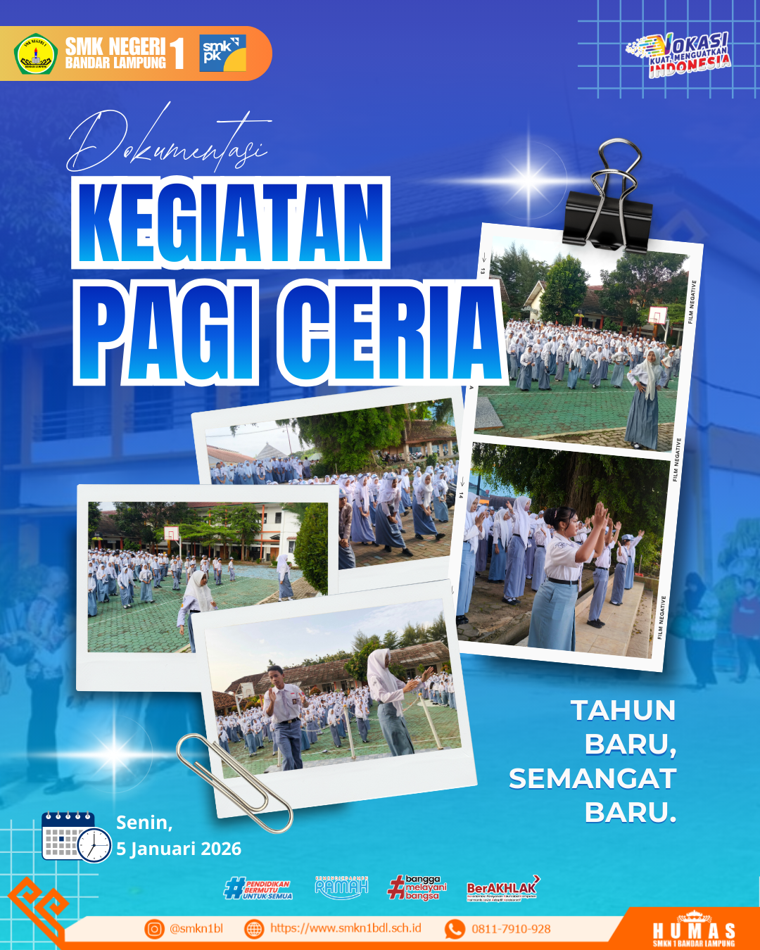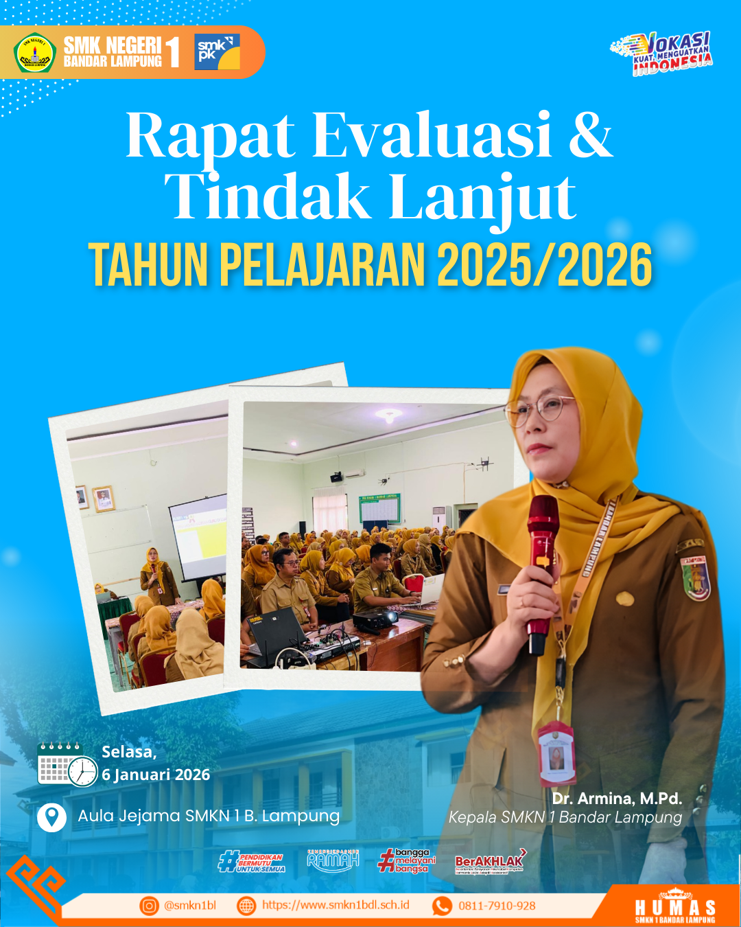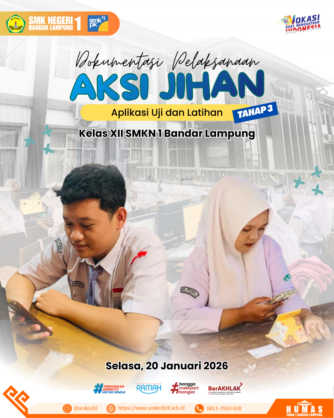 Selamat datang di website resmi SMK Negeri 1 Bandar Lampung! Temukan informasi terkini tentang sekolah, kegiatan, dan prestasi kami. Mari bersama membangun masa depan yang lebih baik!